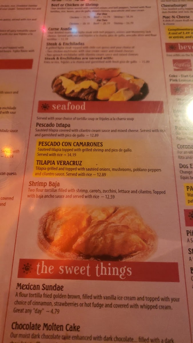 With fajita beef or chicken, seasoned with chipotle sauce, breaded, fried and topped with queso, cilantro cream sauce and cheeses